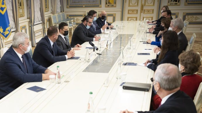 Президент Володимир Зеленський провів зустріч із двопартійною делегацією Конгресу США. Один з сенаторів пообіцяв Україні летальну зброю. Джерело: сайт президента,…