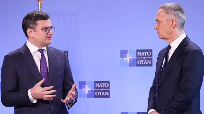 Дмитро Кулеба, Єнс Столтенберг, фото: Getty Images Міністр закордонних справ Дмитро Кулеба в телефонній розмові з генеральним секретарем Північноатлантичного Альянсу…