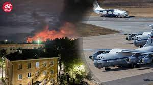 скриншот відео вибухів у російському Пскові Російські ЗМІ повідомляють, що чотири літаки Іл-76 пошкоджені на військовому аеродромі у Пскові внаслідок…