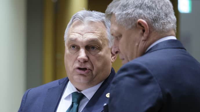 Віктор Орбан, Роберт Фіцо, фото: Getty Images Прем’єрів Словаччини та Угорщини, Роберта Фіцо та Віктора Орбана, зустріли у Празі протестом…