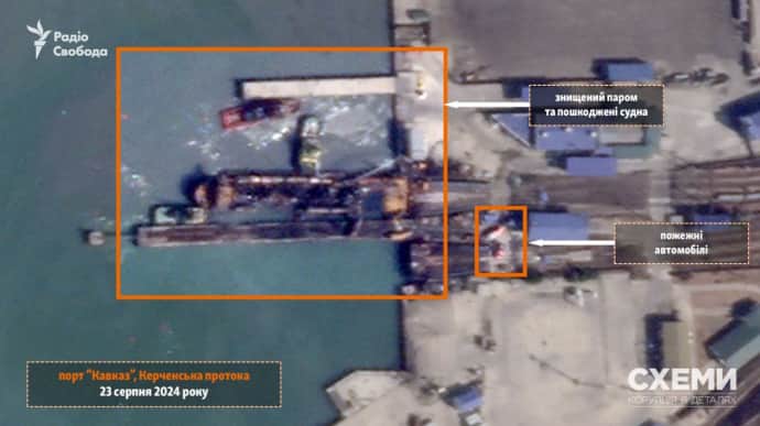 Наслідки удару по російському порту “Кавказ”. ФОТО З TELEGRAM “РАДІО СВОБОДА” З’явилися супутникові фото наслідків українського удару по російському порому…